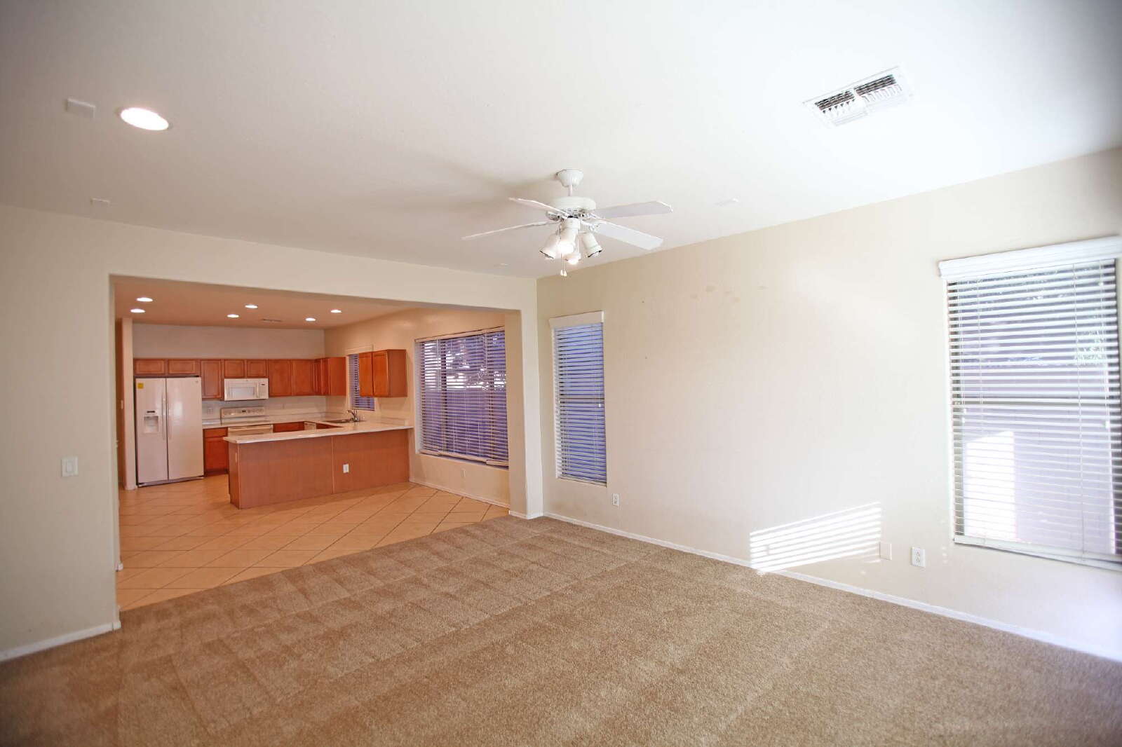 HUGE 4 bedroom, 2.5 bath home is perfect! This home features a large kitchen with tons of counter and cabinet space. Kitchen features refrigerator, range/oven, built-in microwave and dishwasher. Separate living and family rooms, huge master suite with dual sinks separate tub and shower. Washer and dryer are also included! Large grassy backyard with extended covered patio. Lots of room for all the toys in the 3 car garage. Sorry, no pets
