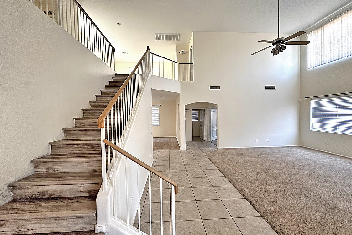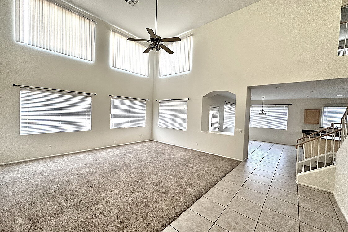 4 Bedroom + 2.5 Bathroom + Den. 2 story great room, formal dining room, large eat-in kitchen features maple cabinets, large upper level loft, one bedroom on the main level. Master suite includes walk in closet, separate tub and shower and dual sinks. Upgraded carpet, 16 inch tile, upgraded light fixtures, 2 inch blinds and large yard! 3 car garage