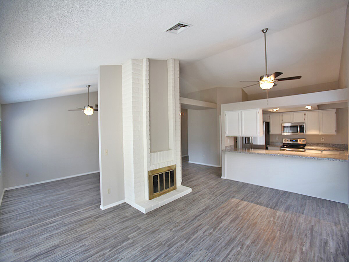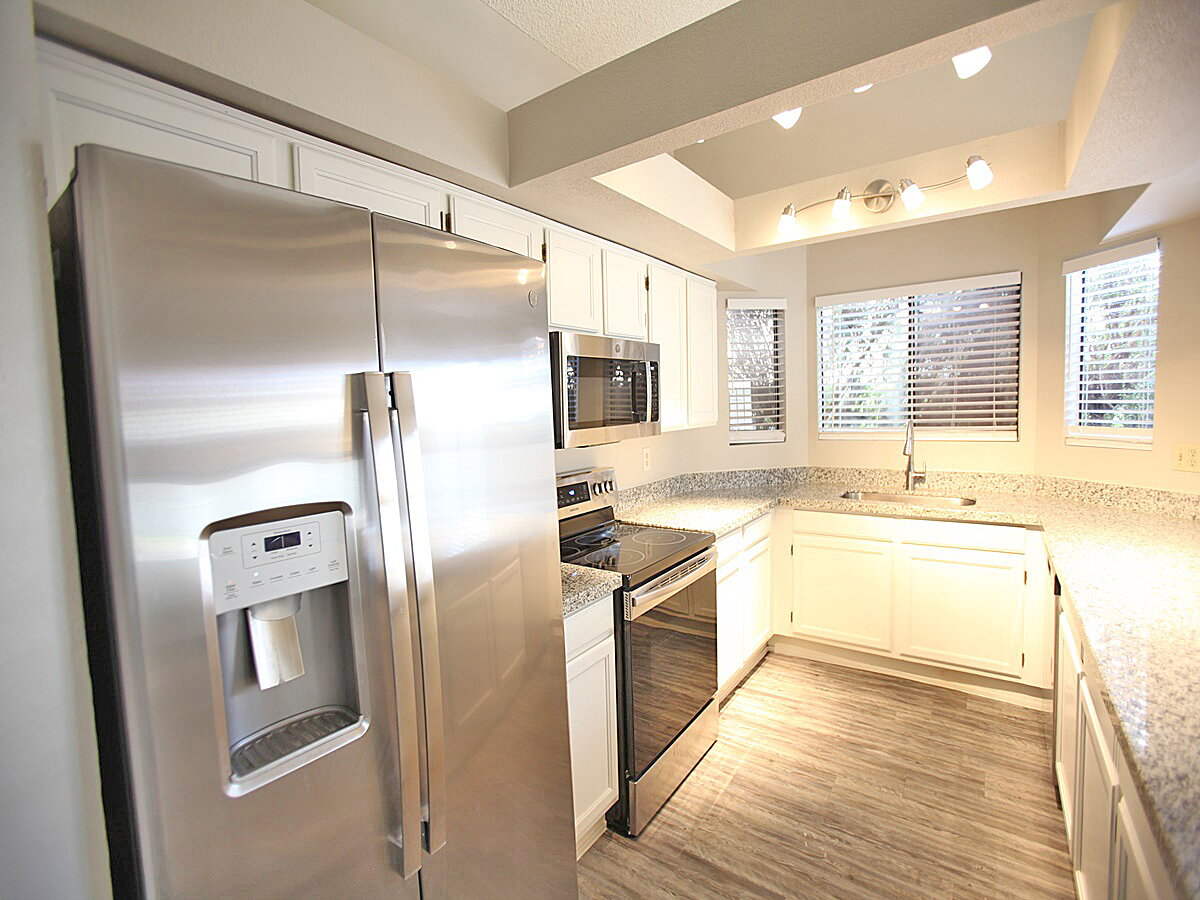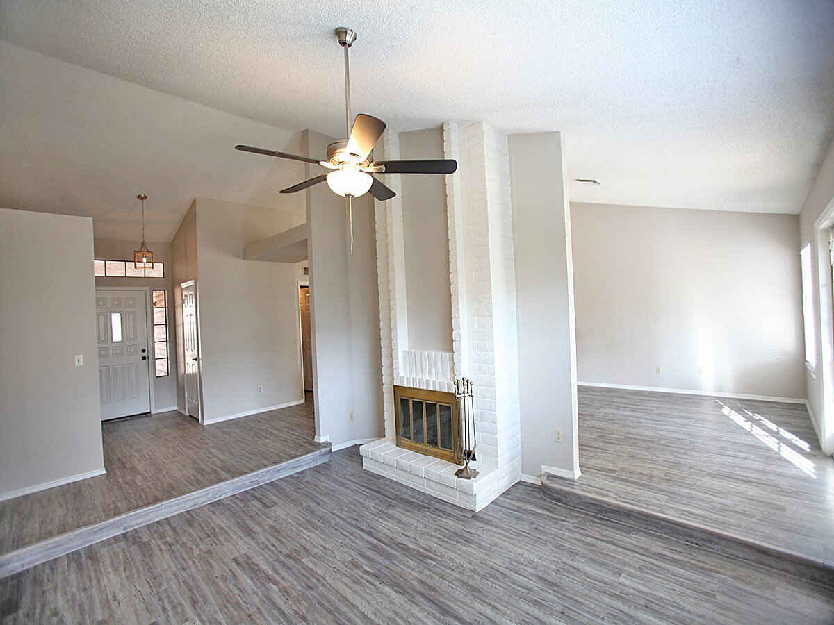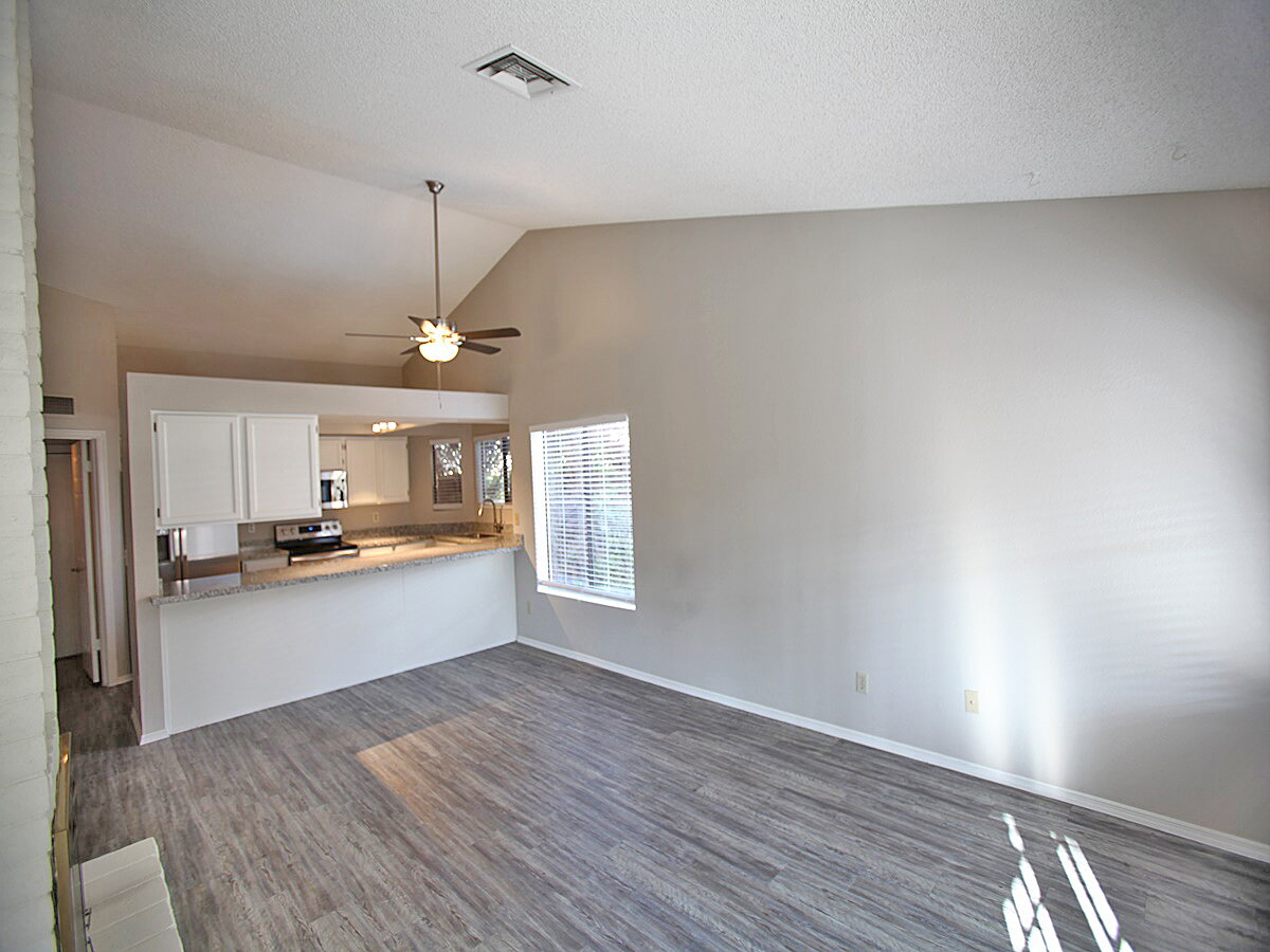 3 Bedroom + 2 Bathroom home in Arrowhead Ranch. Upgrades throughout!! Beautiful cabinets and granite counters in the kitchen! Kitchen features stainless-steel appliances, range/oven, built-in microwave, dishwasher, refrigerator. Family room with fireplace. Ceiling fans and blinds throughout. Also includes washer and dryer. Backyard features covered patio, grassy area and beautiful swimming pool! 2 car garage with