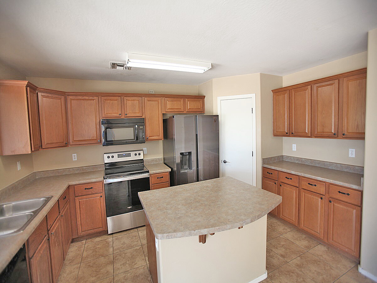 Large 5 bedroom home. Kitchen features refrigerator, stove/oven, dishwasher and built in microwave. Large center Island and lots of cabinet space. Sliding glass doors lead to very spacious backyard. Living room has lots of windows for natural lighting and vaulted ceilings. Master bedroom features private bathroom with dual sinks and walk in closet. 2 car garage with opener. Backyard has covered patio.