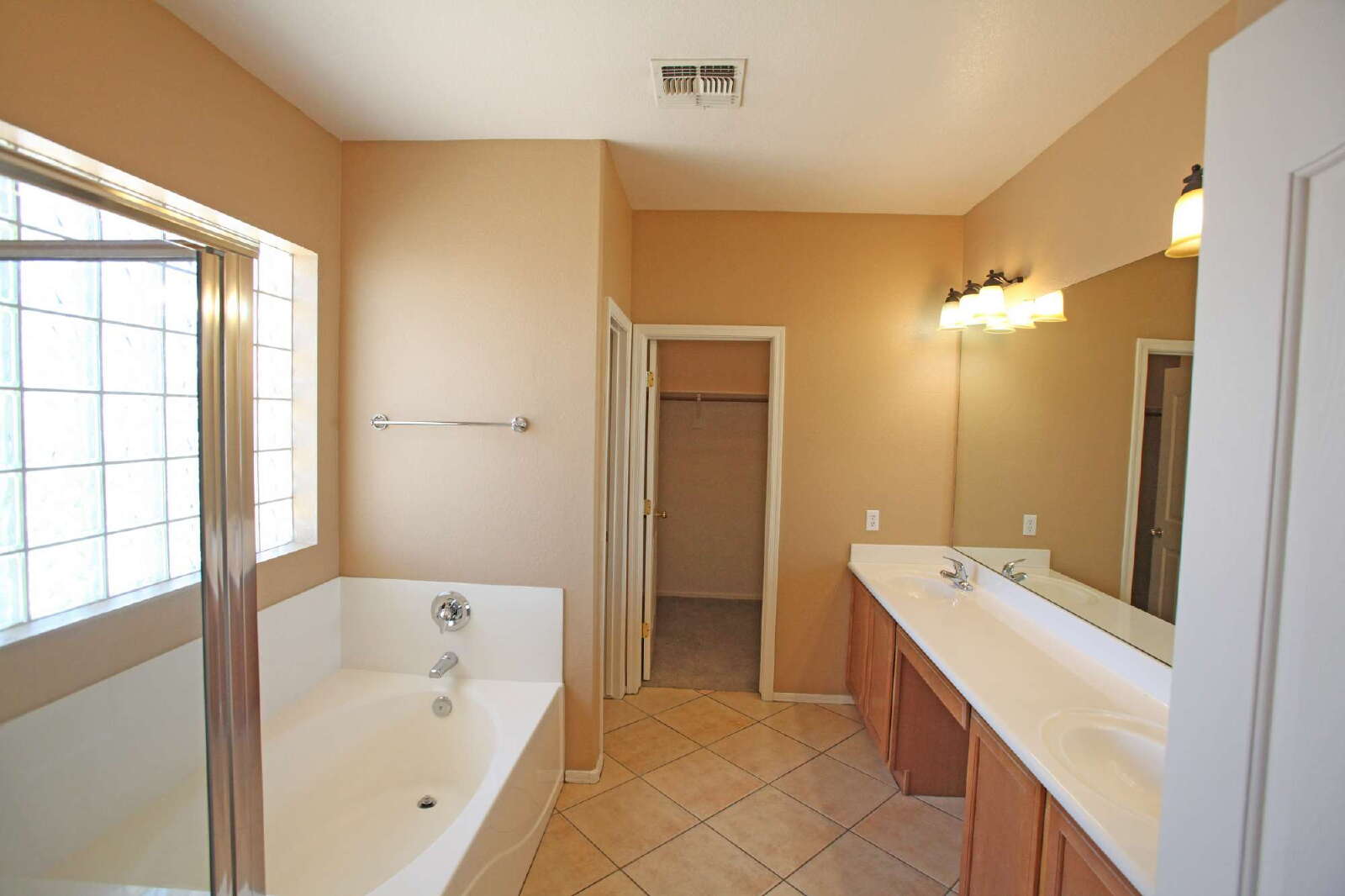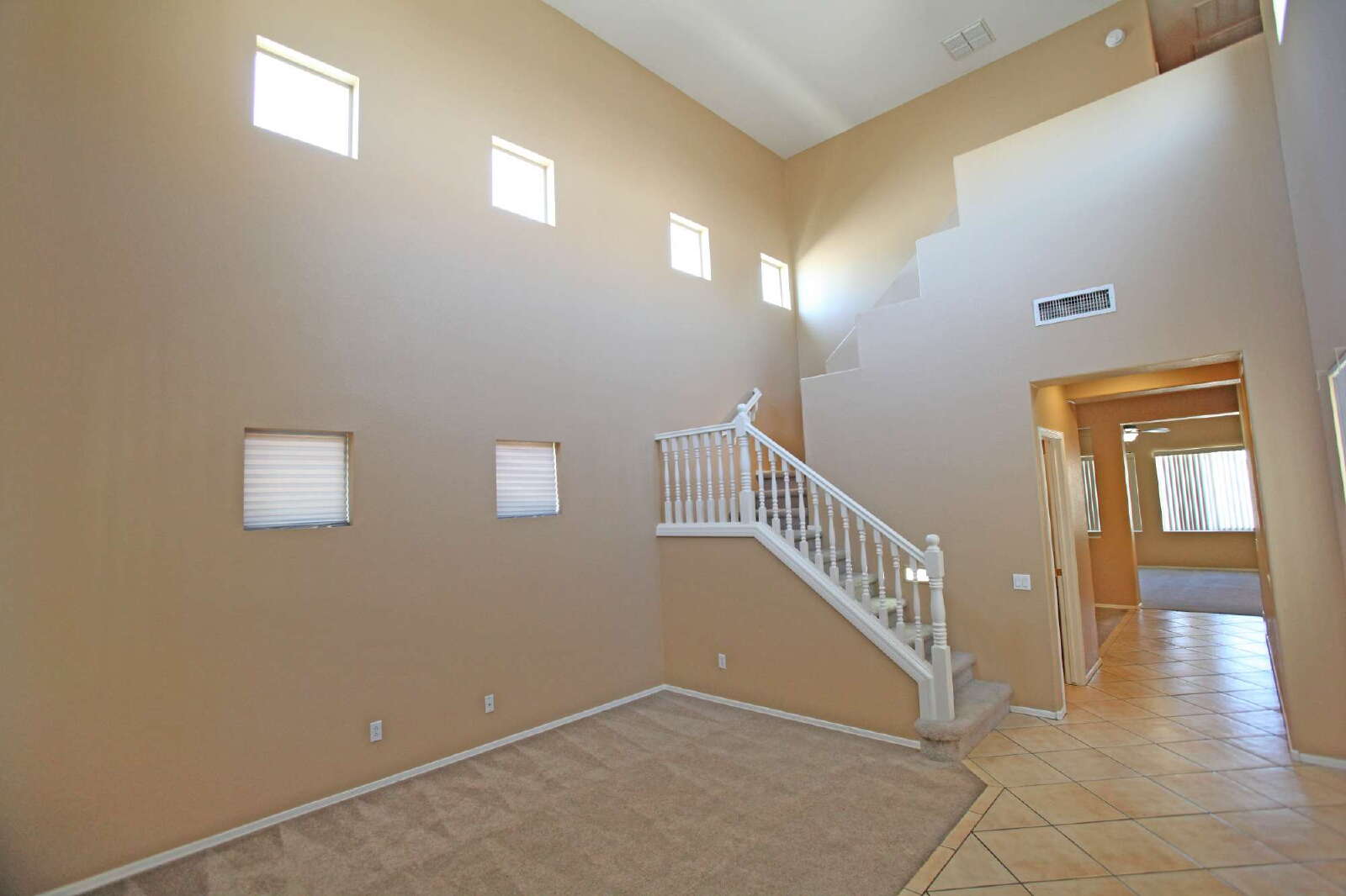 Large 3 Bedroom Home With 2.5 Bathrooms, Enter Into A Large Living Room With A Soaring Ceiling, 18-inch Tile Flooring Leads To A Large Kitchen With Center Island And Black Appliances, Built-In Microwave, Range/Oven, Dishwasher, Refrigerator, Spacious Dining In Kitchen Area, Separate Formal Dining Room, Large Family Room, Ceiling Fans, Laundry Room With Storage Area, Upstairs Spacious Standard Bedroom, Double Sink Vanity Hall Bathroom, Large Master Suite, Master Suite Bathroom Includes Separate Shower & Soaking Tub, Double Sink Vanity With Counter Sitting Space, Walk-In Closet. Covered Patio, Desert Landscaping, Private Courtyard With Covered Patio.